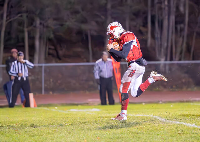 Ryon carried 19 times for 319 yards and five touchdowns, at least one in each quarter. He added to his list of school records by becoming Lackawanna Trail’s career rushing leader. Ryon also added five extra points.
